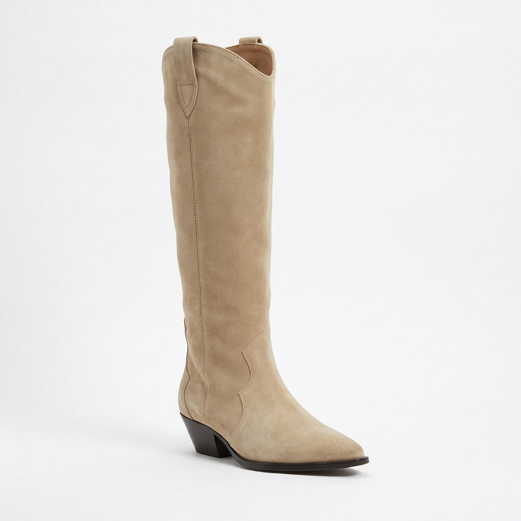Élise – Bottes Beiges en Daim à Bout Pointu