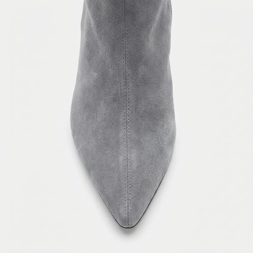Inès – Bottes Grises en Daim Mi-Mollet à Talon Bas