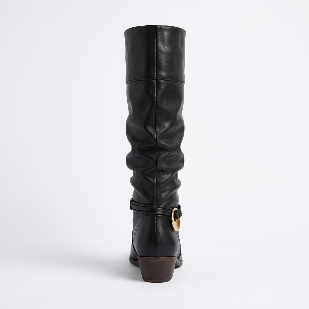 Les bottes Lucile combinent cuir noir et détail doré pour une touche sophistiquée.