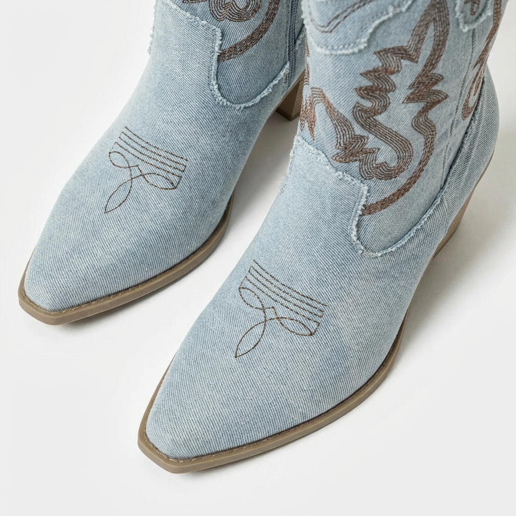 Les santiags Maya mixent esprit cowboy et originalité avec un effet denim bleu brodé.