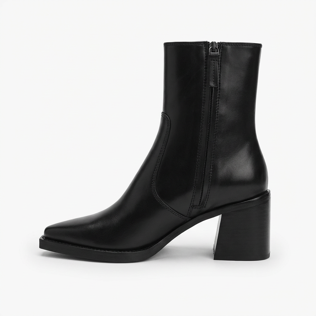 Nora – Bottines Noires à Talon Carré