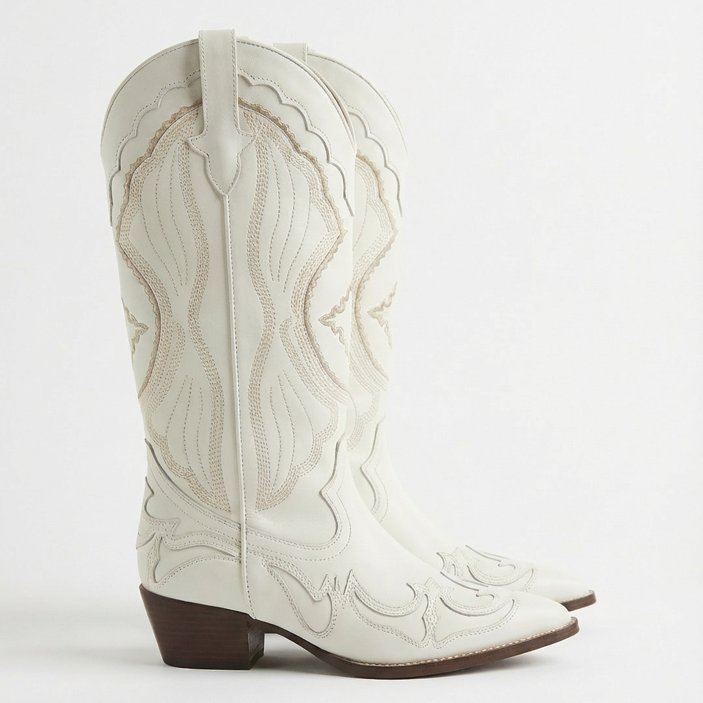 La santiag Willow se distingue par ses broderies western et sa couleur blanche lumineuse. Un modèle fort pour affirmer un style cowboy moderne.